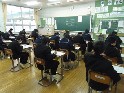 中学1・2年生は、今日と明日、後期の期末テストに取り組んでいます。