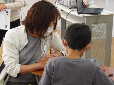 友だちで教え合ったり、先生の説明を聞いたり、真剣に取り組んでいました。