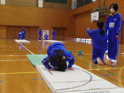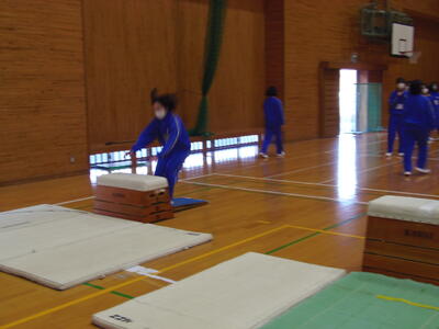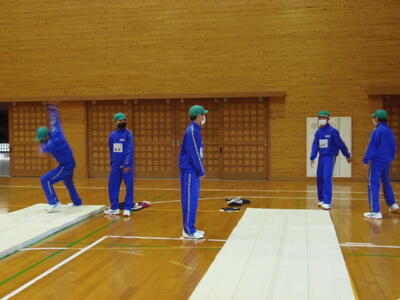 卒業生は、一つ一つの動きを確認しながら取り組んでいました。