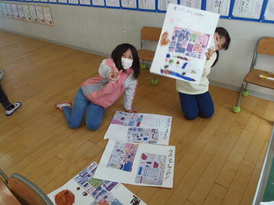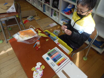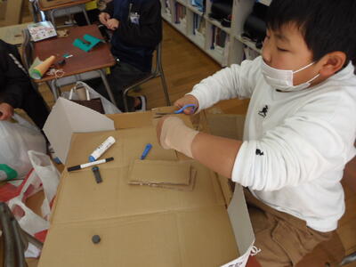 図工で工作をしていました。いろいろなテーマで作っていました。