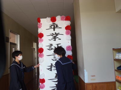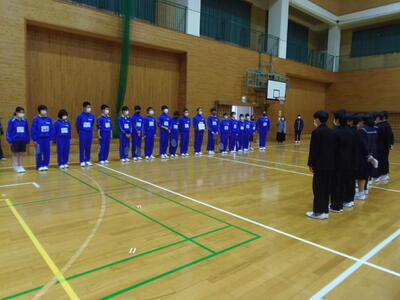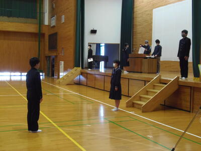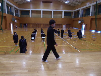 中学3年生は、4日(金)に行われる卒業証書授与式の練習をしていました。今までは、学年部だけでの練習でしたが、校長先生や司会の先生も入り、行われました。