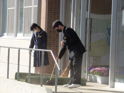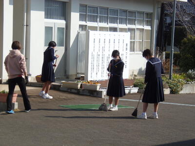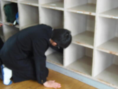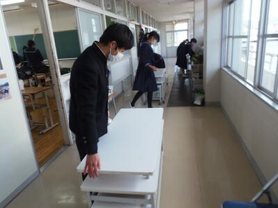 中学3年生は、公立後期選抜と特別支援高等学校の入試を受けない生徒が、一年間使った教室の清掃をしていました。受検している友だちのことも気にかけながら、教室などを隅々まできれいにしていました。