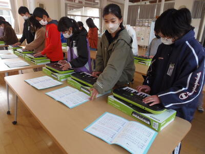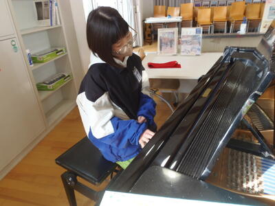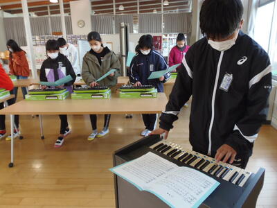 6年生が音楽の授業を受けていました。卒業式で演奏する合奏の練習をしていました。