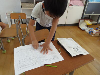 小学2年生は、生活科の授業でした。授業参観の時に発表する3分間スピーチの準備をしていました。