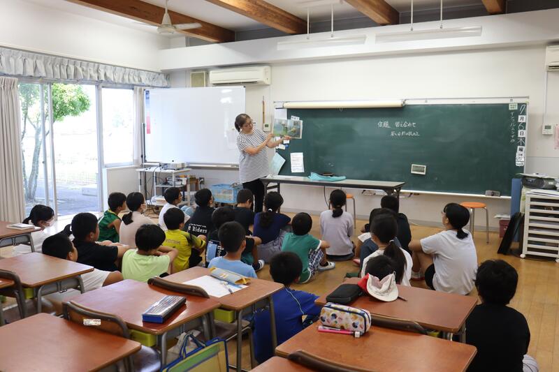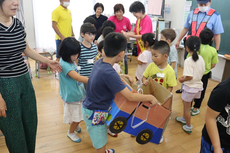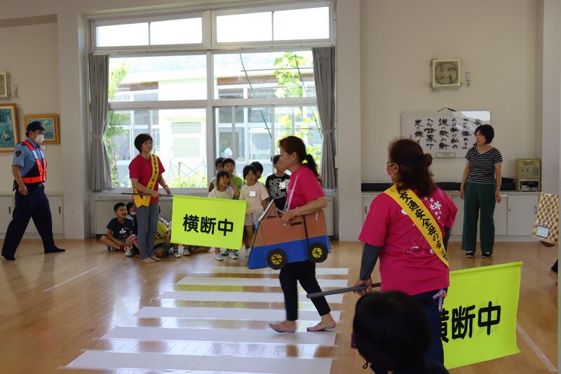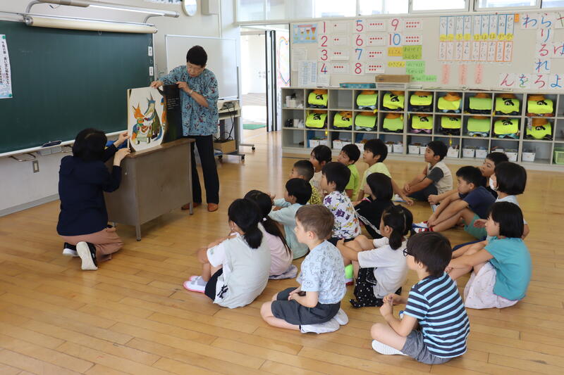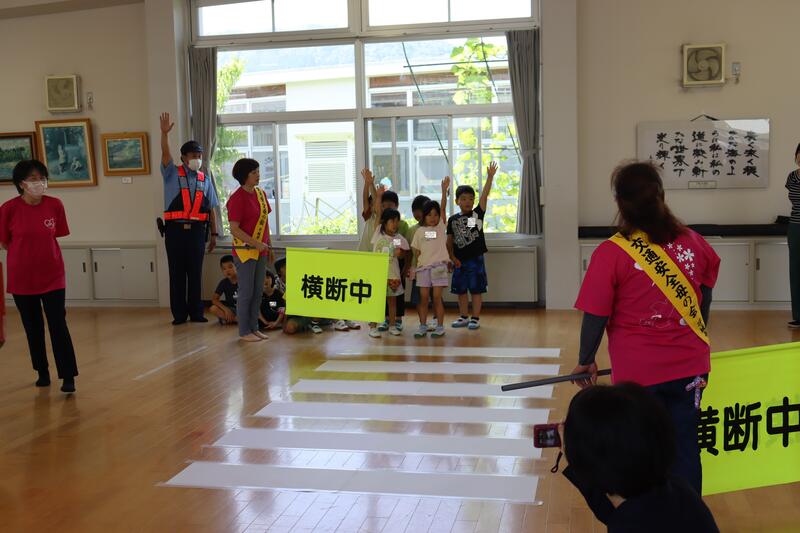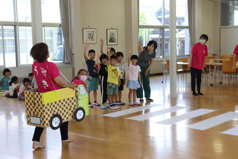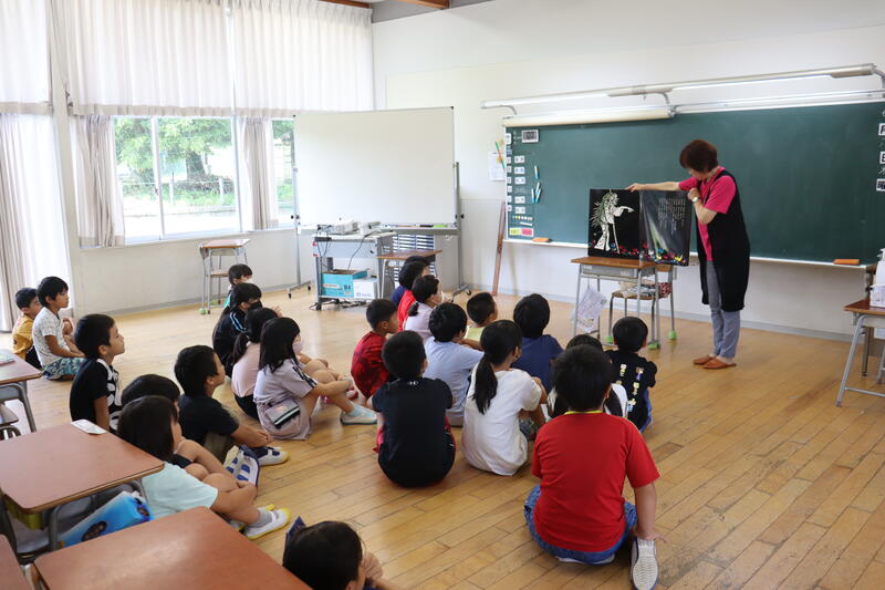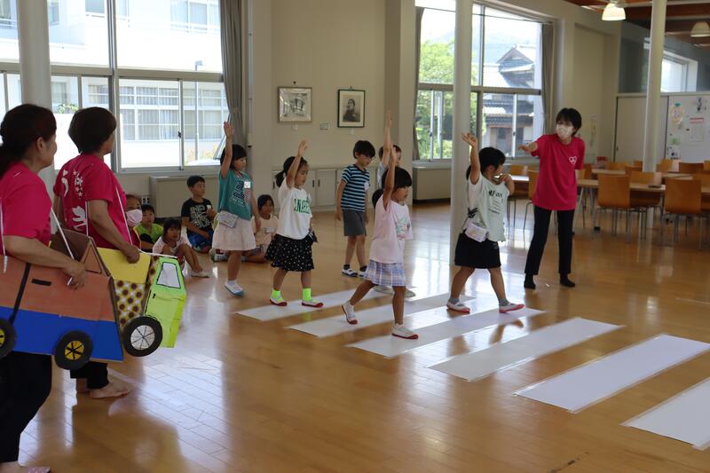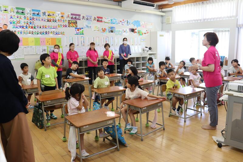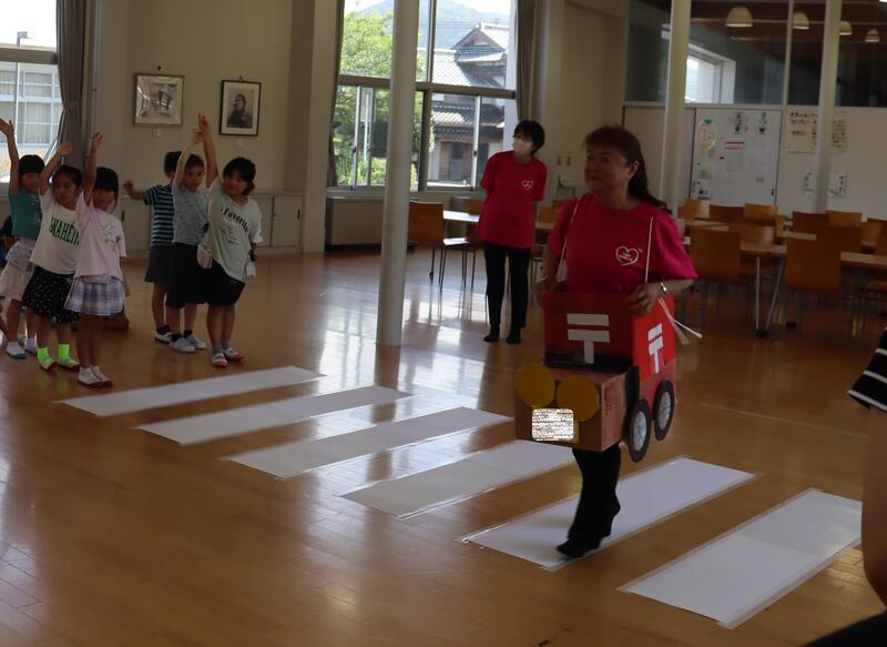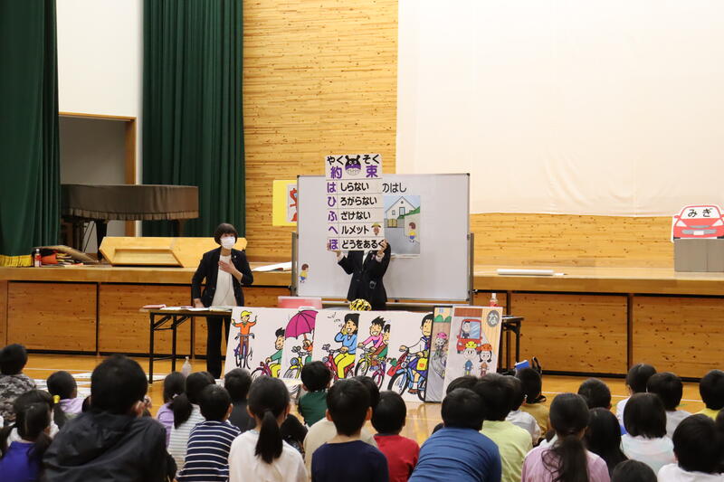 今日は交通安全教室がありました。宇城市交通安全協会からお二人の講師の方にきていただき、道路の歩き方や自転車の乗り方について、お話をしていただきました。