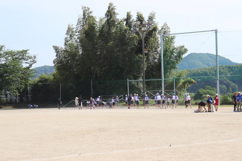 今日の中学生の運動会の練習の様子です。赤団、白団にわかれて、集団行動の練習をしています。