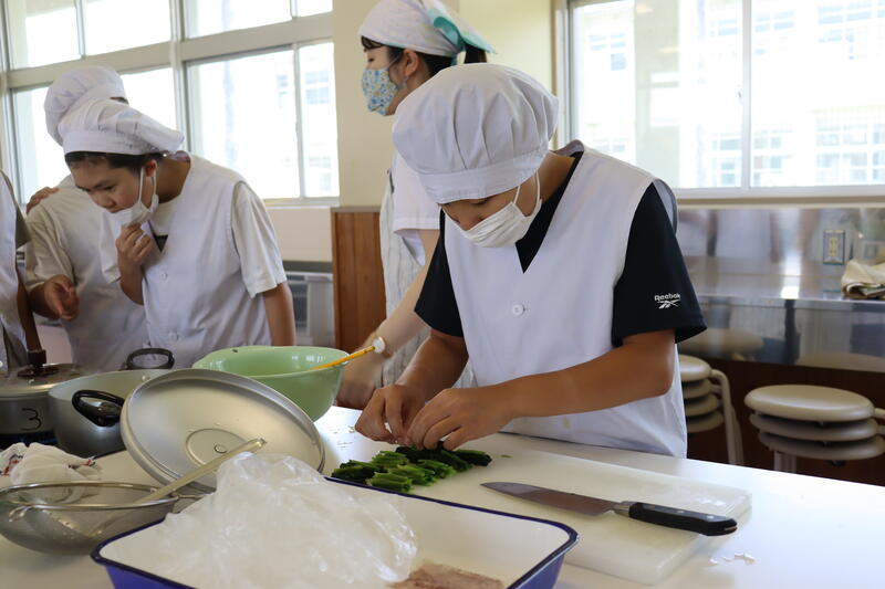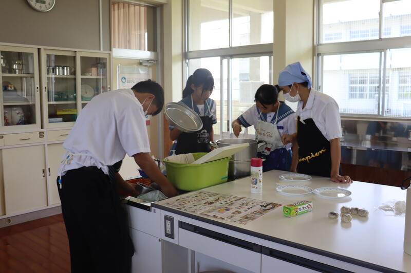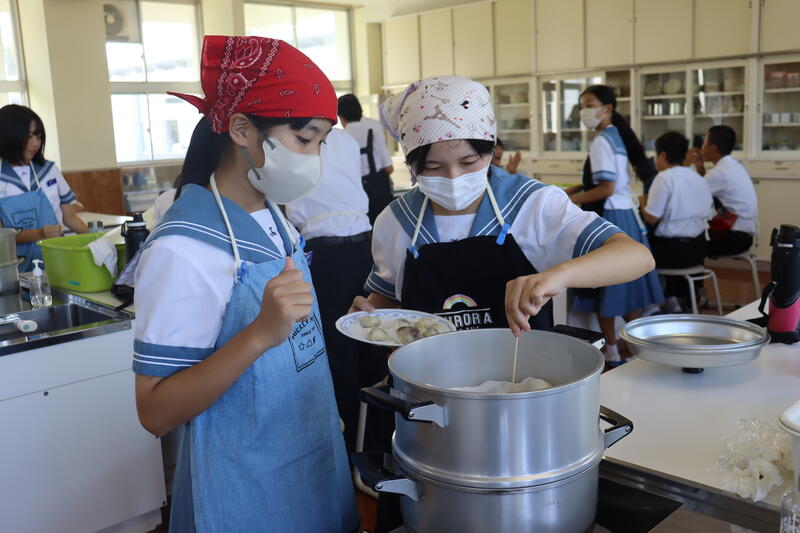 中学2年生は、家庭科で、調理実習があり、「いきなりだんご」を作っていました。「こしあんチーム」「つぶあんチーム」にわかれてつくったようです。食べやすいおおきさで、塩味をきかせたもちもちの皮と甘いあんこがベストマッチでした。