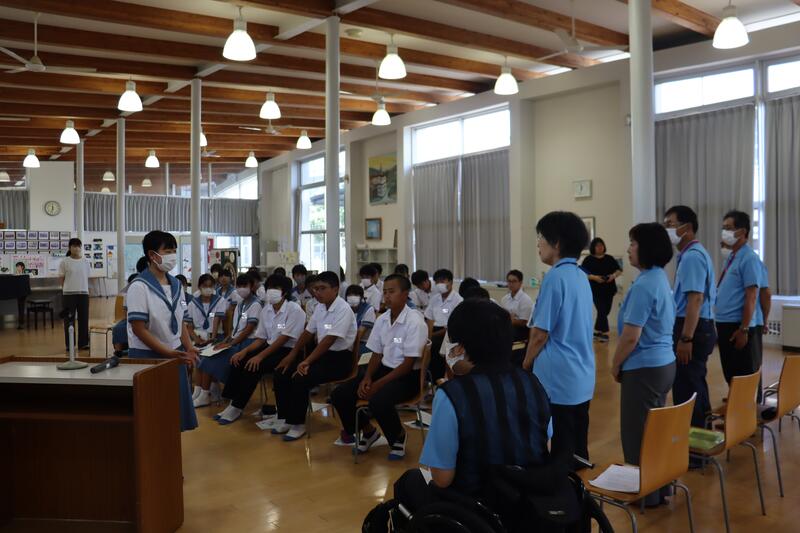 今日から中学2年生が集団宿泊教室に参加しました。入所式の様子です。
