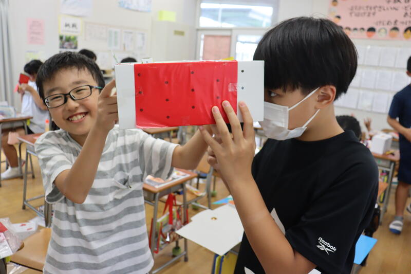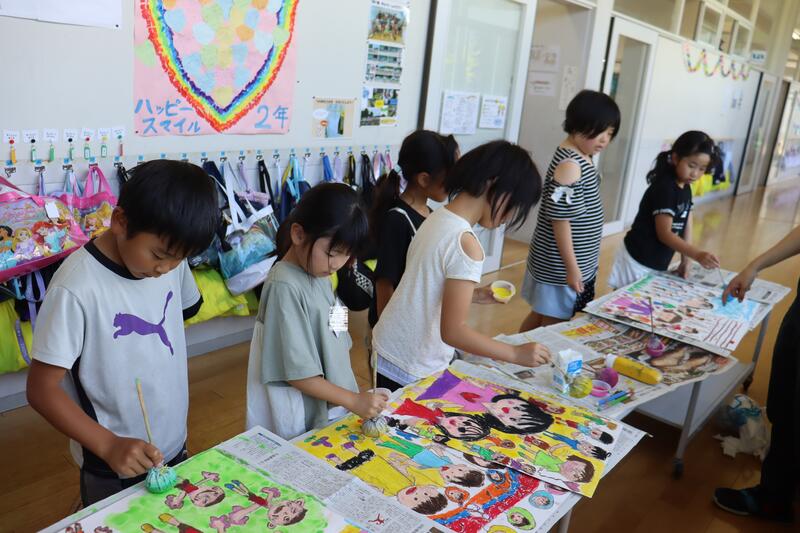 小学2年生は、図工で、透明な容器に色を付け、おひさまの光をとおして遊んでいました。きれいな影にみんな大喜びでした。