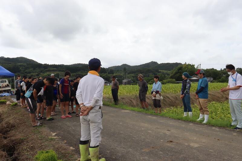 始業式のあと、中学生は、宇城駅伝大会の選手推戴式を行いました。