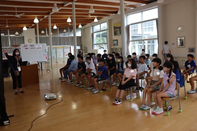 集団宿泊教室も最終日を迎えました。小学5年生と中学1年生が一緒に朝の集いをしました。