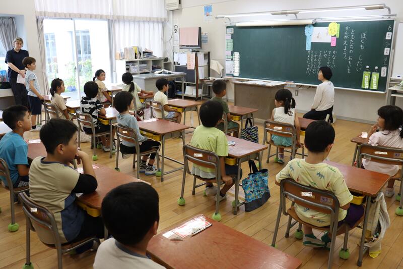 小学1年生は、学校探検に出かけていました。うきうきしながら、でも静かに、とてもおりこうに校内を回っていました。