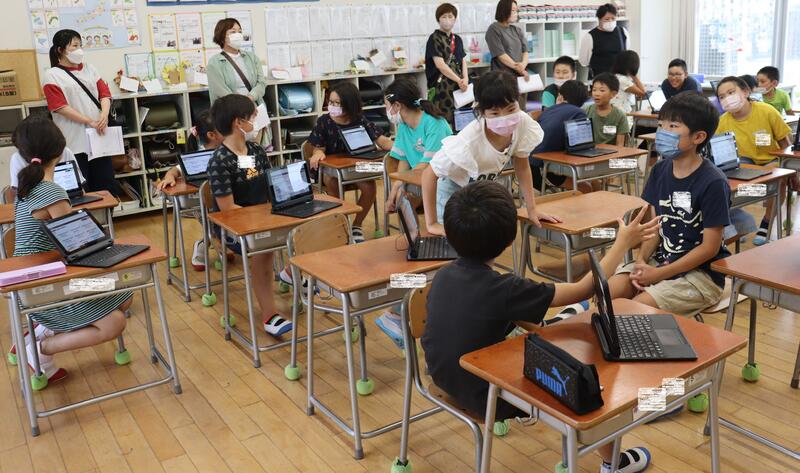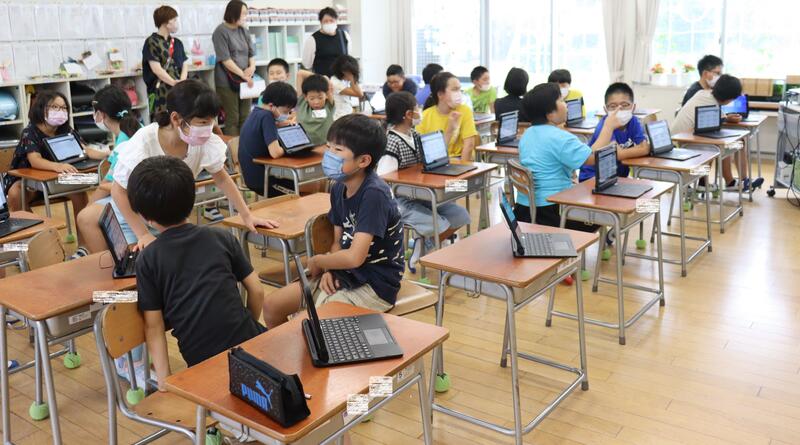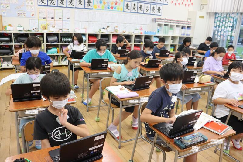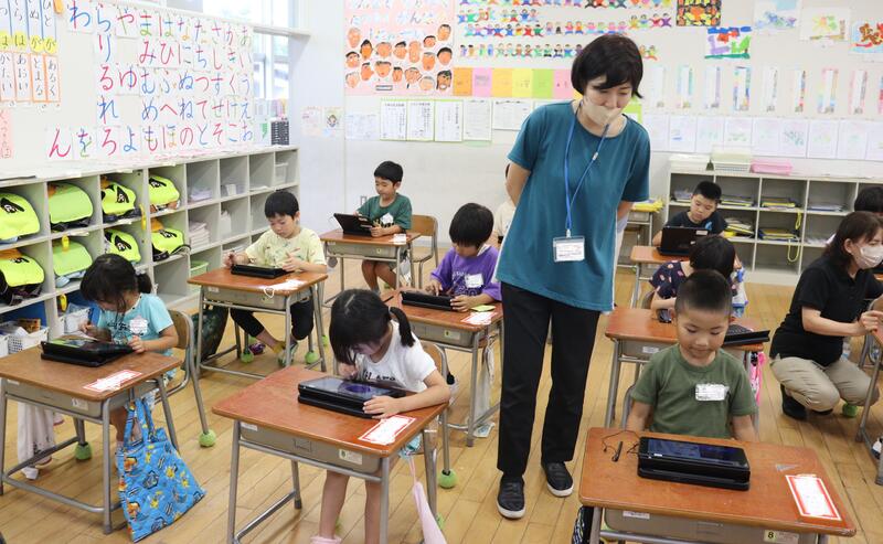 小学5年生は国語の音読をタブレットPCで録音して先生に提出していました。タブレットPCを活用した授業風景も、すっかり当たり前になってきました。