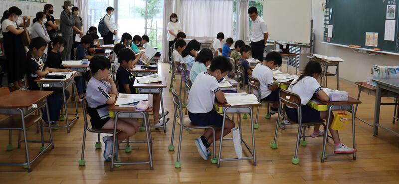 小学2年生から5年生まで、学力検査が行われました。みんな真剣です。がんばれ!