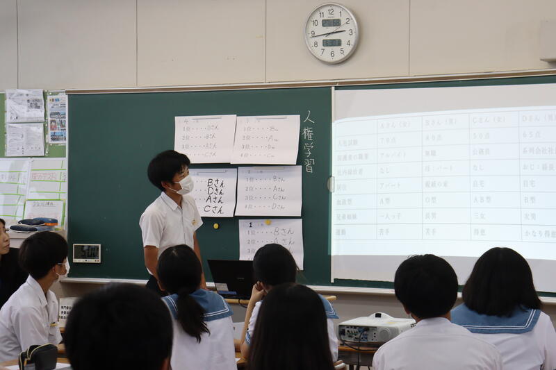 中学3年生は、養護教諭による保健の授業がありました。「性の多様性」について、みんなで考えました。お互いを尊重すること、個性を認め合うことの大切さを感じました。