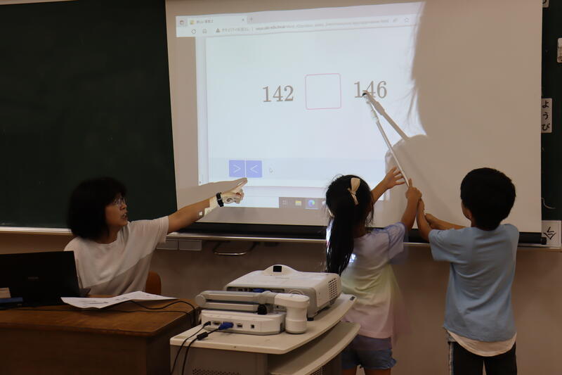 小学4年生は、算数で「折れ線グラフ」について学習しています。小学校教務の先生と中学校数学の先生がサポートに来てくださいました!