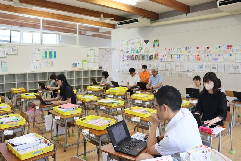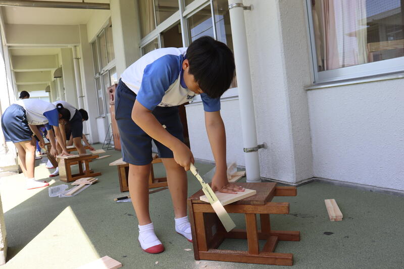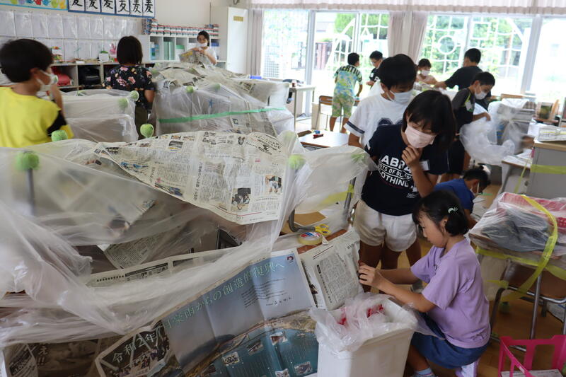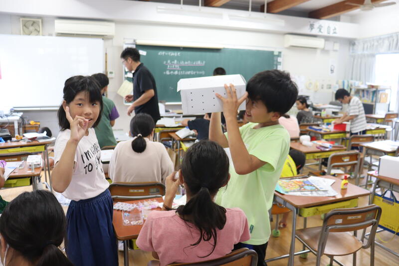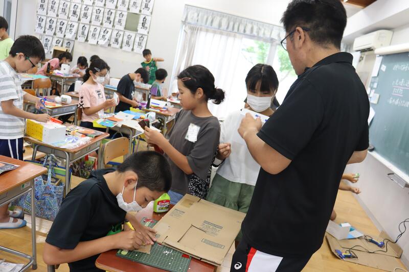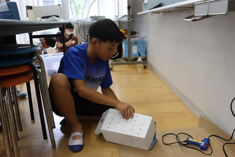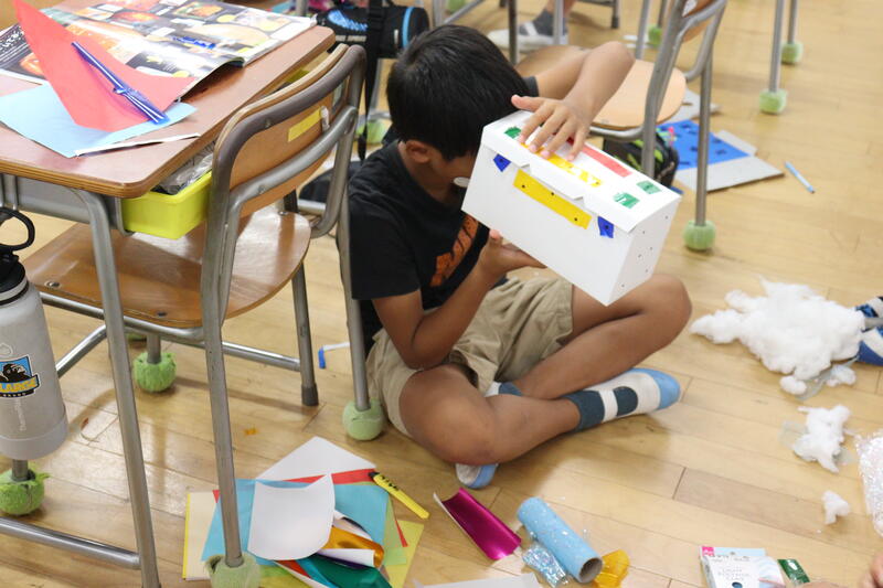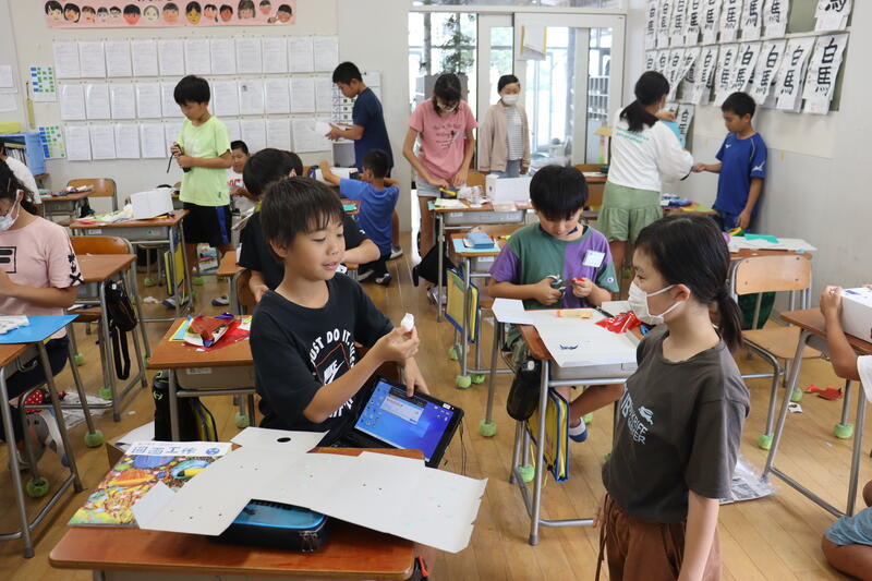 理科室では、「科学発明展」に出品する作品を仕上げていました。夏休みを使って、実験や観察をがんばってきた人がたくさんいました。ユニークな実験や発明もあり、子どもたちのアイデアに感心しました!