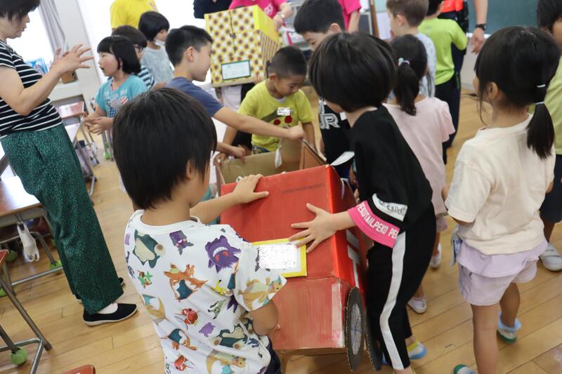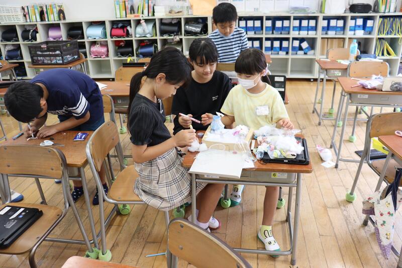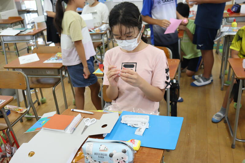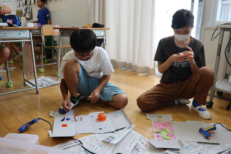 多目的ルームでは、小学2年生が、なにやら楽しそうにおもちゃを作っていました。来週、小学1年生を招待して、一緒に遊ぶのだそうです。工夫を凝らしたいろいろなおもちゃをつくっていましたよ!1年生のみなさん、お楽しみに!