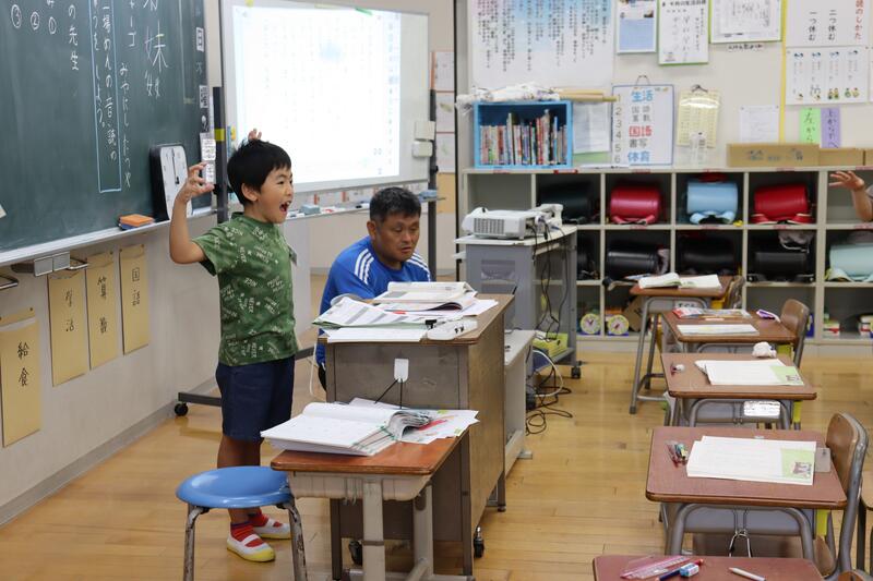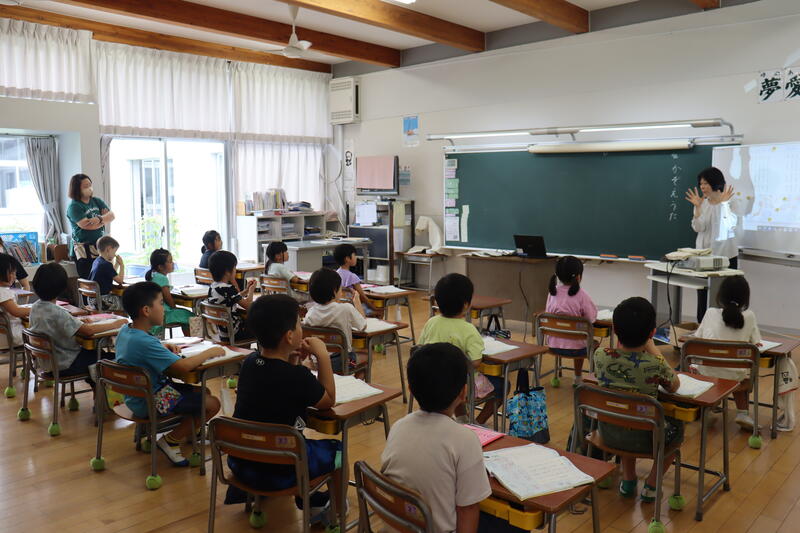 小学1年生と2年生は、婦人会のみなさんと一緒に、ダンスの練習です。本校は、教育活動のいろいろな場面で地域のみなさんの温かい関わりがあり、本当にありがたいです。