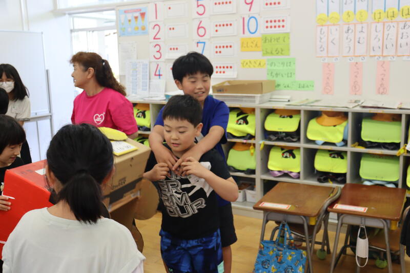 2時間目に、小学2年生が1年生をおもちゃ広場に招待していました!2年生がつくったおもちゃで、1年生が楽しく遊びました。2年生は、遊び方やルールについてしっかりと説明してくれました。1年生も、おもちゃを丁寧に扱いながら、ゆずりあって楽しく遊ぶことができました。とても楽しい時間となりました。