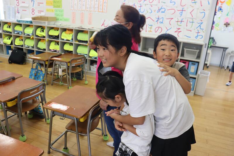 小学4年生は、仲間づくりのゲームをしていました。楽しそうです。