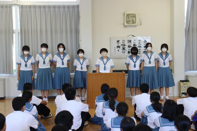このあと、中学生は団ごとに、応援団員、集団行動リーダー、パネルリーダーを紹介し、それぞれの長が決意を述べました。