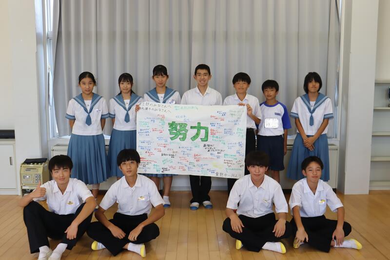 中学生は、午後の時間を使って、運動会の練習が本格的に始まりました。応援、集団行動、パネル、それぞれの係に分かれて、3年生を中心に準備を進めています。