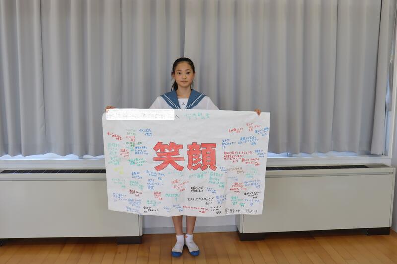 「One Team 豊野中」これまでの練習の成果を発揮して、全員で襷をつないでほしいと思います。がんばれ豊野中!