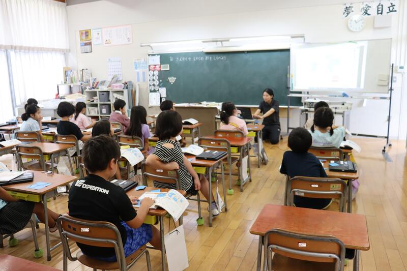 そして、今日は、令和5年度前期の終業式でした。小学校、中学校それぞれで、終業式を行い、前期の振り返りを行いました。