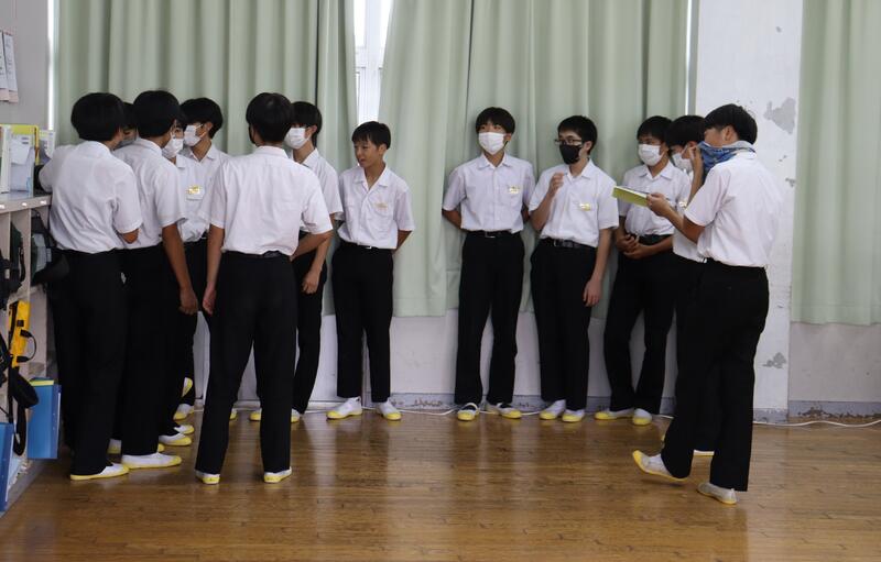リーダーを中心に、練習が進んでいきます。やってみないとわからないこと、うまくいかないことも多々あるようですが、みんなで意見を出し合い、話し合いながら改善していく姿は、本当に頼もしい!初めからうなくいかないからこそ、それを乗り越えたときの喜び、達成感はより大きなものになることと思います。がんばれ、豊野中生!