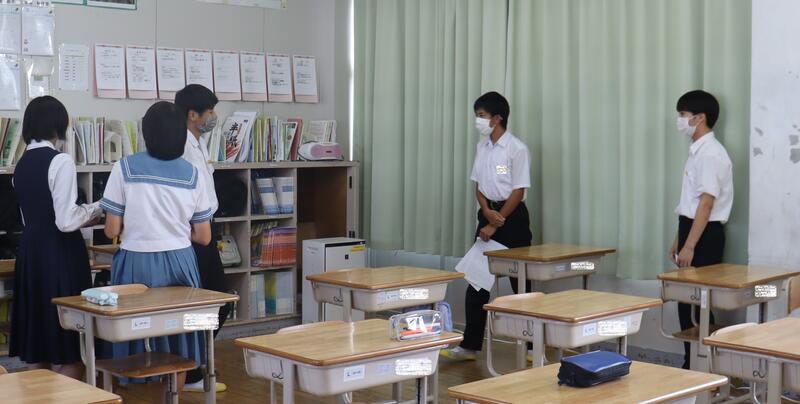 中学生は、昼休みに合唱コンクールの練習をしています。学校中に生徒の歌声が響くのはいいものです。これは中学3年生の教室の様子です。