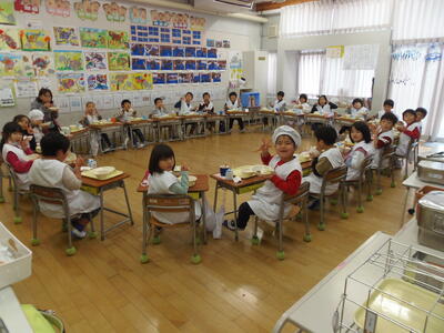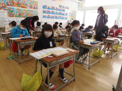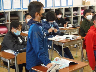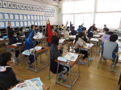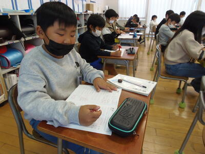 小学3年生は、数学の答え合わせを行っていました。一人ずつ回答して、確認し合っていました。