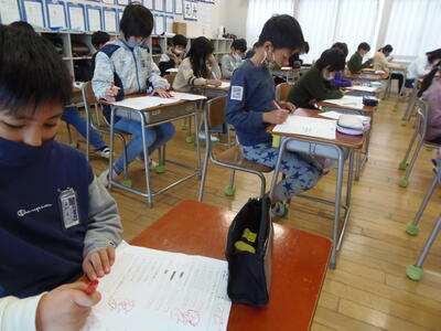 4年生は、国語のテスト返し、答え合わせをしていました。