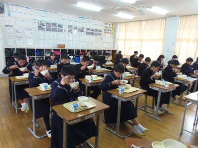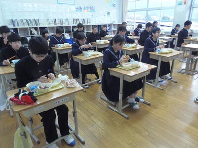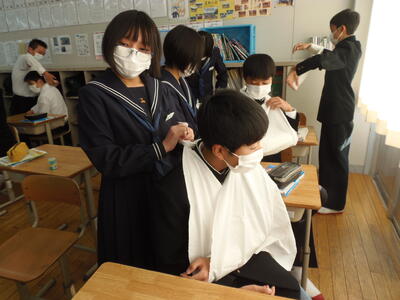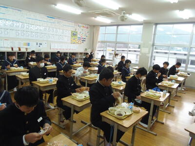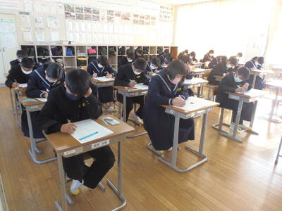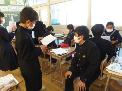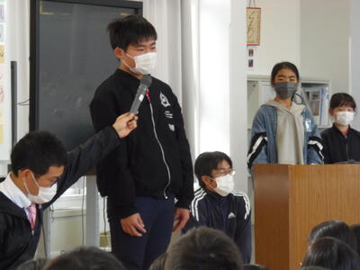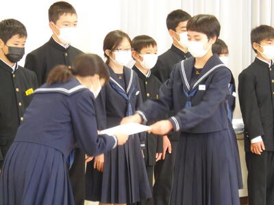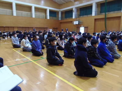 4時間目は、中学校の後期前半終業集会が行われました。小学校同様、持久走駅伝大会、ポップコンテスト、人権、バレー部の大会優勝などの表彰を終業集会の前に行いました。
