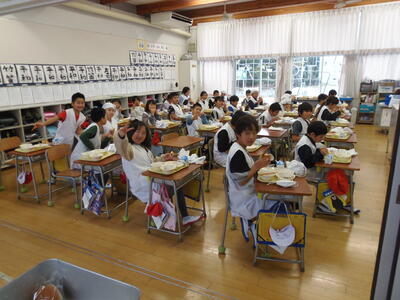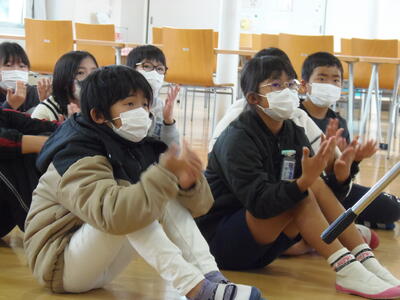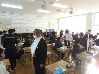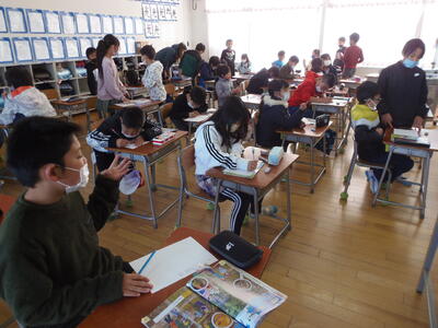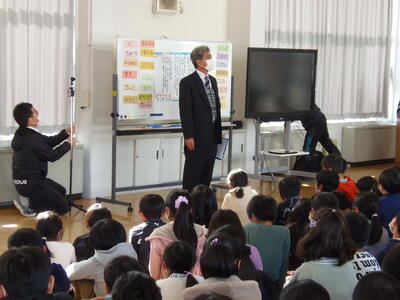 6年生は、社会の授業で中学校の柴田先生が、幕末の出来事について詳しく説明されていました。