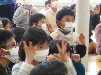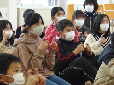 一つ一つの言葉と手話合わせていきます。子どもたちは覚えるのが早い!