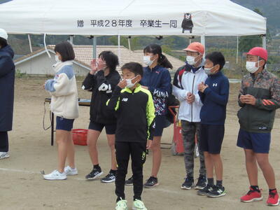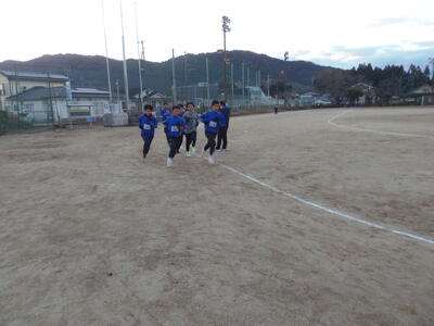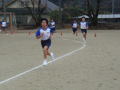 小学5・6年生は、男女に分かれて持久走大会の練習をしていました。