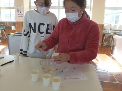 小学5年生は、出汁のテースティングをしていました。AとBの出汁を比べてその違いをまとめていました。