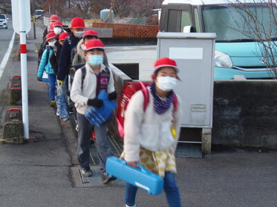 今日は、今年、最初の登校です。子どもたちは、寒い中、元気に登校していました。