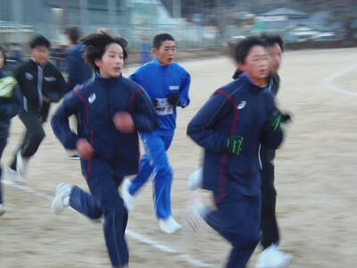 中学生は、7時20分からパースを決めて走っています。最後は、とても速いペースで走っていました。