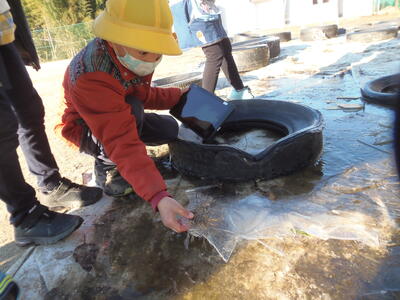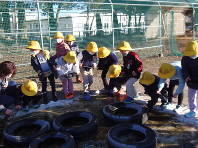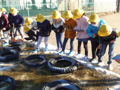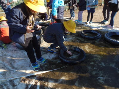 氷は、1センチほどあり、冷たいのも気にせずに持ち上げてお互いに写真を撮っていました。