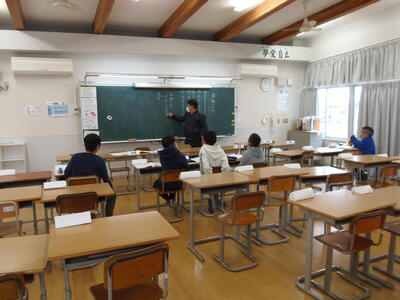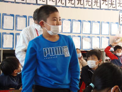 担任の先生と井上先生の漫才のようなやり取りの中で楽しい授業が行われていました。