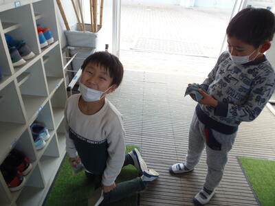 教室に入る前に上靴をきれいに拭いて上がりました。