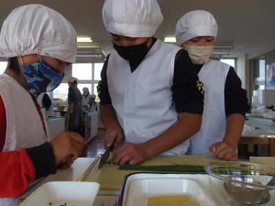 次にジャガイモの皮をむきます。みんな手慣れていて、家庭で手伝っている子が多いみたいです。