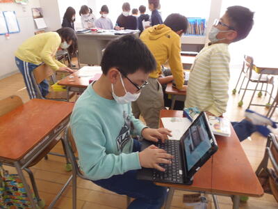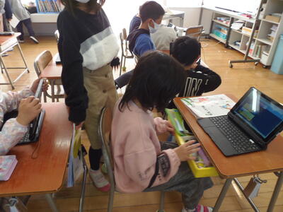 2年生は、多くの子どもたちが勉強していました。算数の解き方について、相談している子どもたちやタブレットで計算している子どもたちがいました。