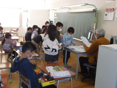 3年生も担任の先生とプリント確認をしていました。他には、私に気づいて笑顔で話しかけてくれました。