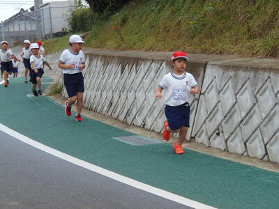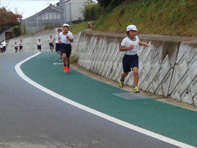 中学2年生の持久走大会に向けた練習の様子です。天気も良く、気持ちよく走っていました。