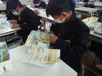 宇城絵画展の金賞作品を紹介します。現在、本校の多目的ルームに掲示してあります。
