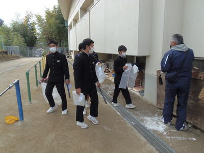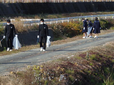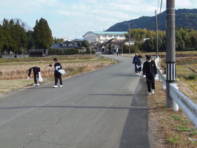 体育委員会が、昼休みに持久走大会のコースの清掃を行いました。