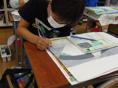 4年生も絵を描いていました。見学旅行の通潤橋の絵を描いていました。